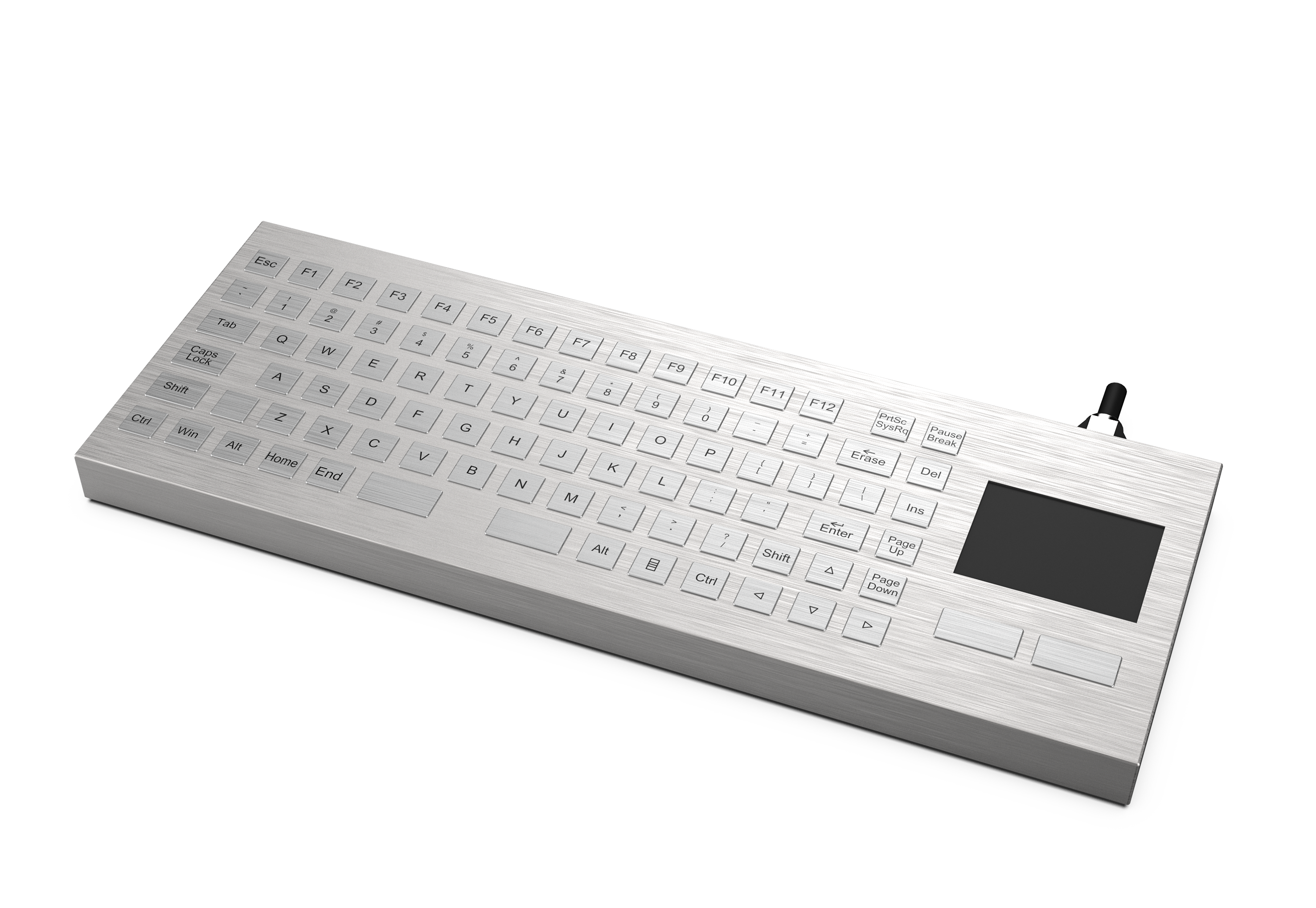 采用不銹鋼外殼,內部灌封工藝,滿足 IP67 防護標準, 包含90個鍵功能鍵盤和1個鼠標功能的觸摸板。