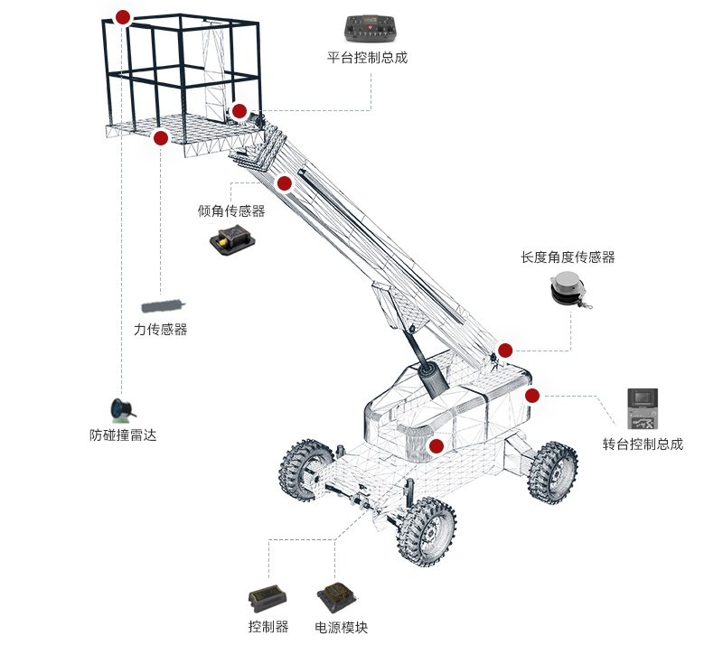 今年會直臂式高空作業平臺配備智能控制技術和安全監測裝置,通過采集AI模擬量、DI數字量并結合運動算法后,對PWM信號、DO信號進行自動化控制,從而在安全的范圍內實現各種自動功能,確保作業平臺在高度作業中的精確定位和安全穩固。適用于高層建筑、大型設施維護等場景。